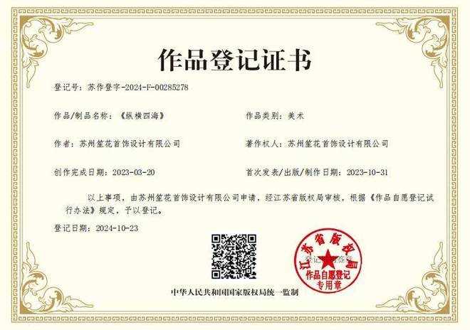 《纵横四海》作品登记证书