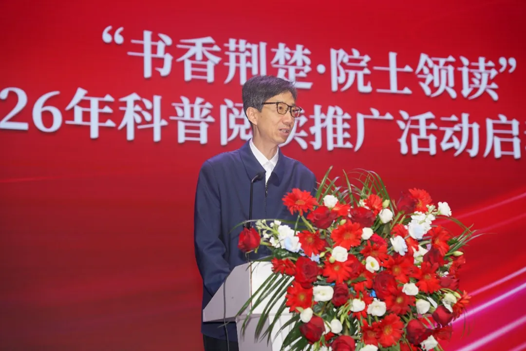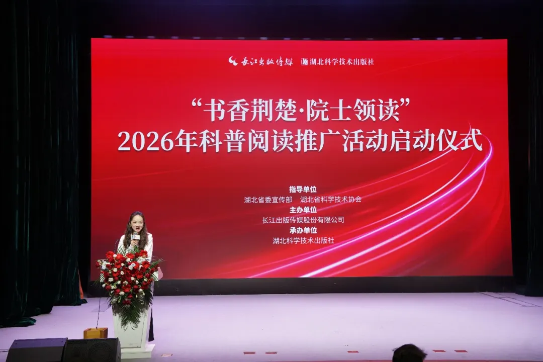 近日,“书香荆楚·院士领读”2026年科普阅读推广活动启动仪式在湖北省图书馆长江厅举行。本次活动由湖北省委宣传部、湖北省科学技术协会指导,长江出版传媒股份有限公司主办,湖北科学技术出版社承办。活动吸引了来自出版界、科技界、教育界的代表及学生读者、媒体记者等百余人参加。
