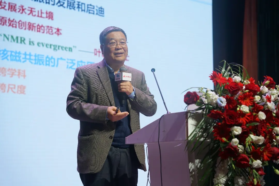 刘买利院士以“生命科学中的磁共振”为题作科普讲座。他介绍了磁共振技术在生命科学研究中的独特优势,指出尽管AlphaFold等AI技术在蛋白质结构预测方面取得重大进展,但在生物大分子的原位、动态及相互作用检测方面,磁共振仍具有不可替代的作用。报告深入浅出,既有前沿科学的前瞻视野,也有贴近生活的生动阐释,赢得现场观众热烈反响。