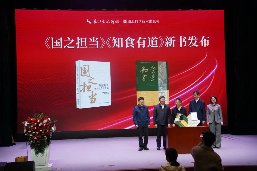 活动期间,还举行了《国之担当:荆楚院士谈科技自立自强》《知食有道》两部新书揭幕仪式。两部作品均由湖北科学技术出版社策划出版,是其深耕院士资源科普、民生科普两大核心产品线的代表性成果。其中,《国之担当:荆楚院士谈科技自立自强》刚刚入选2026年湖北省委书记推荐阅读四本好书。两部作品的作者代表,中国科学报湖北记者站站长李思辉和武汉食品化妆品检验所纪委书记胡兵分别与现场观众分享了创作缘由和书中的故事。